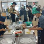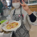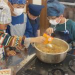 カレーやピザはくじ引きで引いた食材を必ず使わないといけないルールなのでチームで大きさや組み合わせを考えて工夫しながら作りました。小さい子を大きな子たちがフォローしながら調理している姿はとっても微笑ましかったです。みんな上手に包丁も使って誰一人ケガすることなく作れました。
